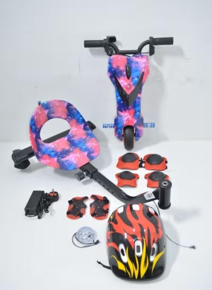 This drift scooter is perfect for smooth surfaces like parks, driveways, and open areas. It features sturdy tires, easy-to-use controls, and safety as a top priority. Included in the package are a helmet and full protective gear for elbows, knees, and wrists — making this the safest choice for your kids.